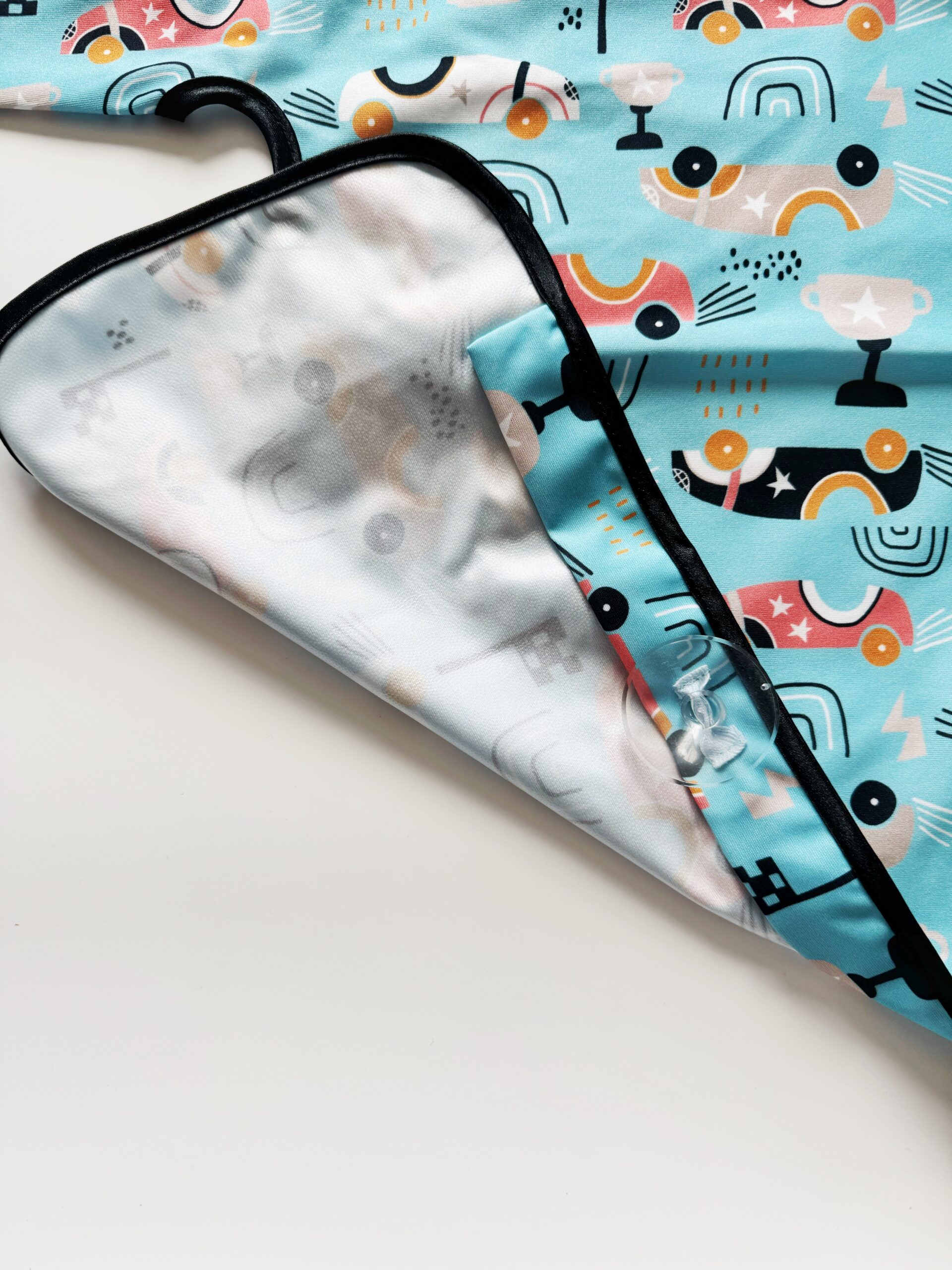 Ten fartuszek to idealny dodatek w okresie rozszerzania diety i nie tylko! Specjalna wodoodporna struktura oraz unikalny wykrój fartuszka pozwoli dziecku ochronić ubranie przed zabrudzeniami i wodą podczas posiłków. Jego kluczową cechą jest posiadanie 2 przyssawek, które z łatwością przyczepią się do tacy krzesełka. Z materiału śliniaka tworzy się specjalna komora, do której wpada niezjedzony pokarm malucha. Tym prostym sposobem życie rodziców staje się łatwiejsze, a dzieci mogą swobodnie uczyć się sztuki jedzenia, bez wywoływania niepotrzebnego stresu u rodzica oraz bez potrzeby dodatkowego sprzątania.